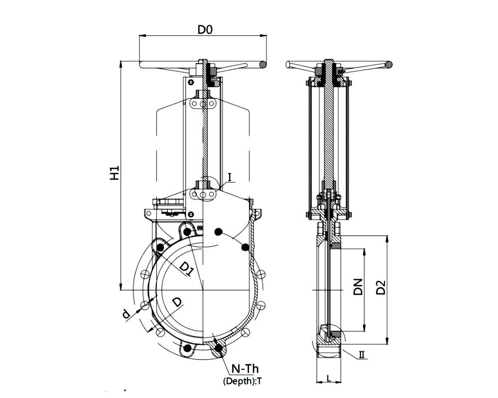 | DN | NPS | L | H | ANSI 150LB | DIN2632 PN10 | ||||||||