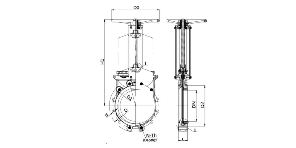 | DN | NPS | L | H | ANSI 150LB | DIN2632 PN10 | ||||||||